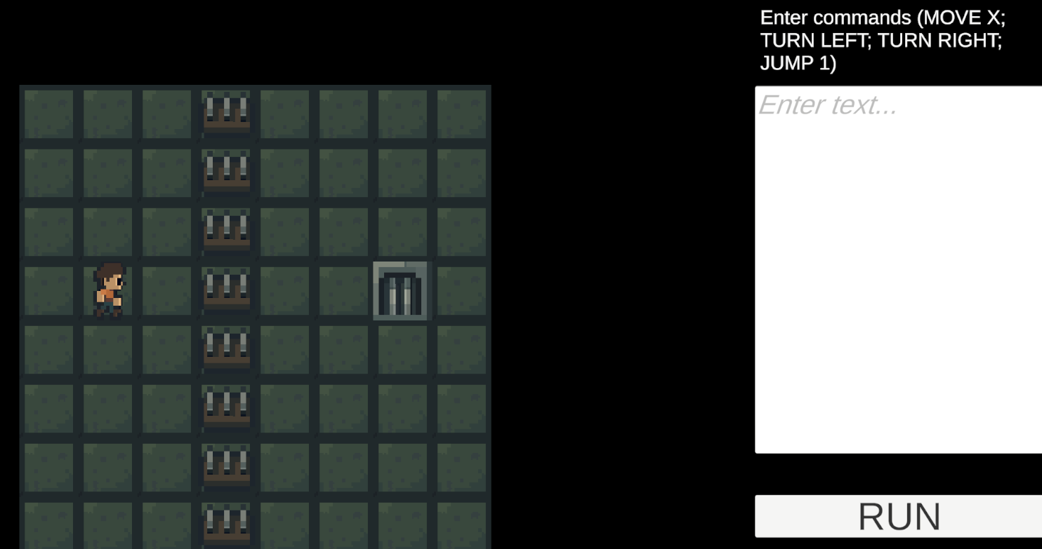 Commands: MOVE X, TURN LEFT OR RIGHT, JUMP X